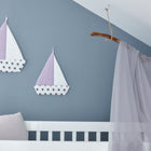 Les voiliers mesurent entre 36 et 42 cm, sont en 100% coton à l'extérieur et peuvent être lavés en machine. Ils sont en outre renforcés à l'intérieur avec un molleton léger afin qu'ils soient suspendus de manière stable et rigide au mur. Contenu : 2 voiliers.