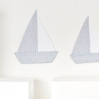 Les voiliers mesurent entre 36 et 42 cm, sont en 100% coton à l'extérieur et peuvent être lavés en machine. Ils sont en outre renforcés à l'intérieur avec un molleton léger afin qu'ils soient suspendus de manière stable et rigide au mur. Contenu : 2 voiliers.