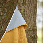 Cape de bain lignes dorées sur piqué gaufré gris moutarde