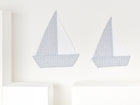Les voiliers mesurent entre 36 et 42 cm, sont en 100% coton à l'extérieur et peuvent être lavés en machine. Ils sont en outre renforcés à l'intérieur avec un molleton léger afin qu'ils soient suspendus de manière stable et rigide au mur. Contenu : 2 voiliers.